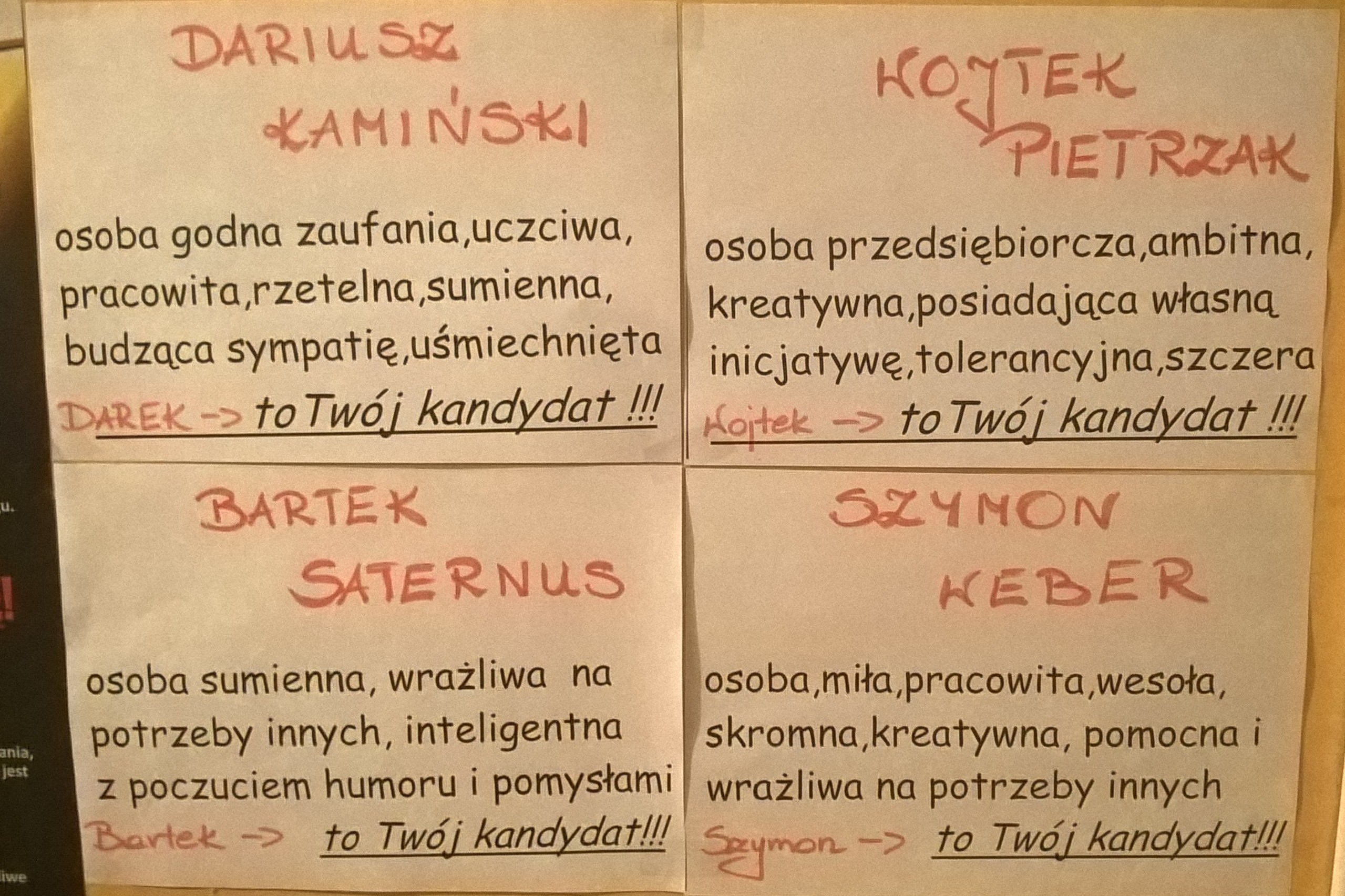 W dniu 21.10.2015r. w Miejskiej Bursie Szkolnej w Zabrzu odbyły się wybory do Rady Wychowanków Bursy. Spośród wszystkich mieszkańców Bursy zostali wyłonieni czterej kandydaci, którzy otrzymali następującą ilość głosów: