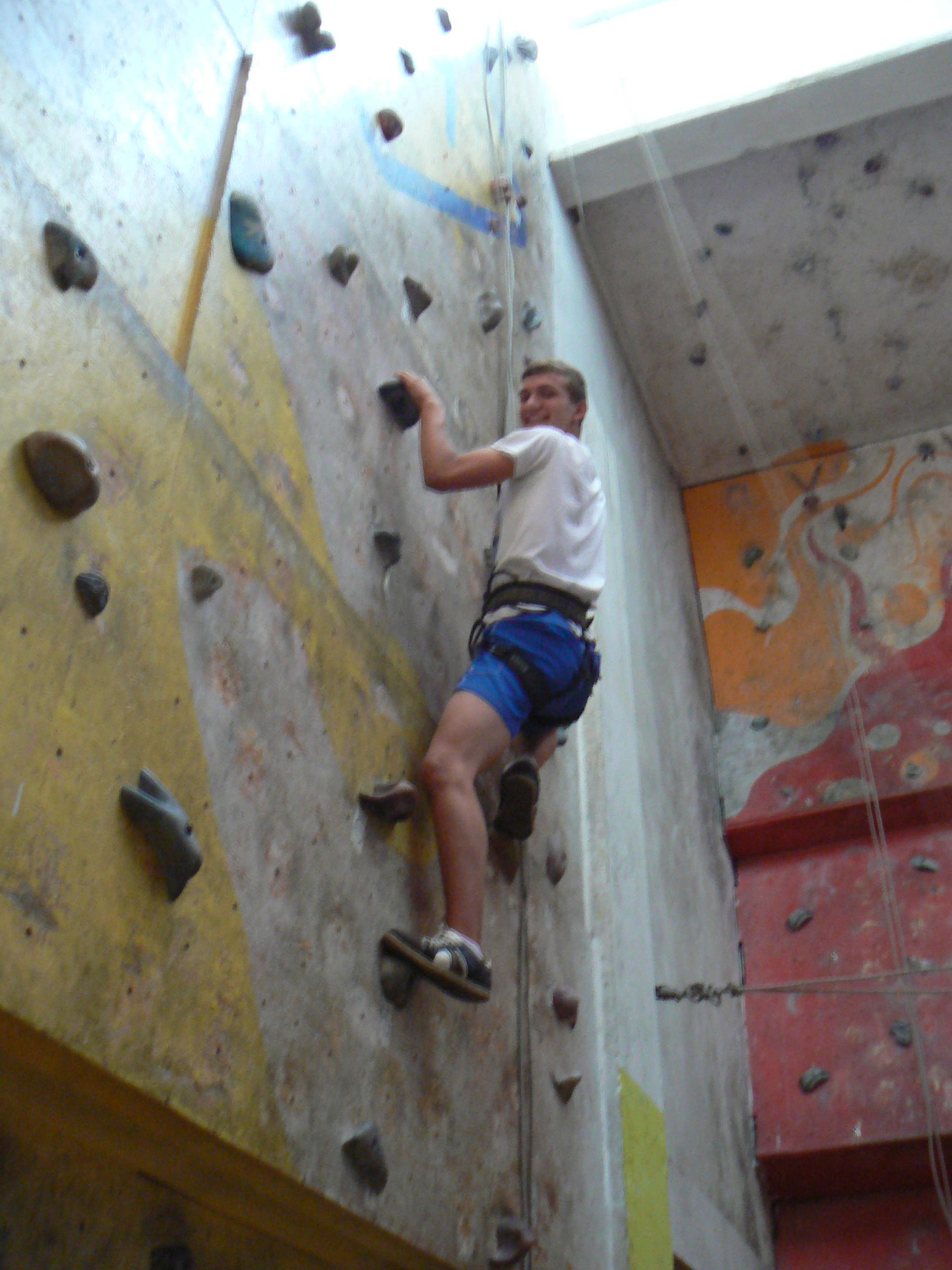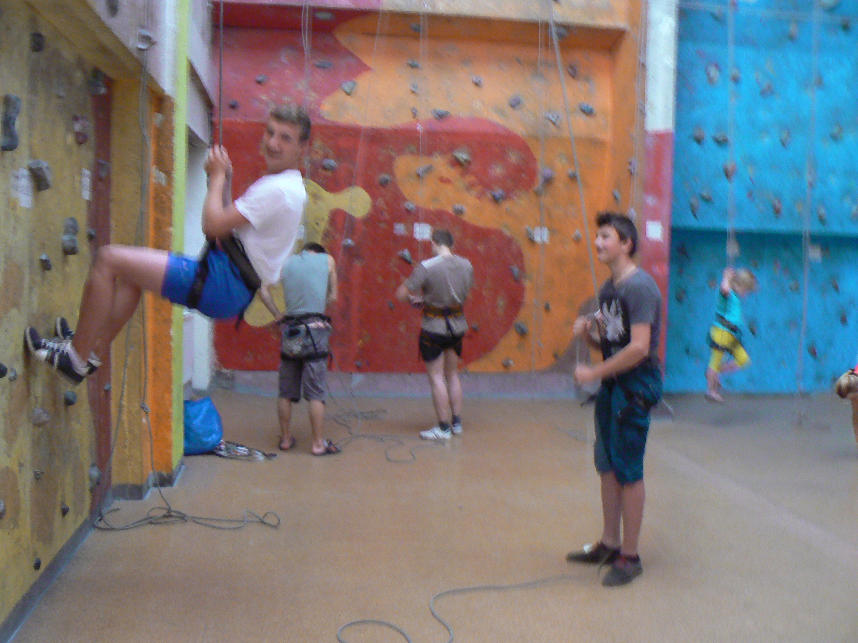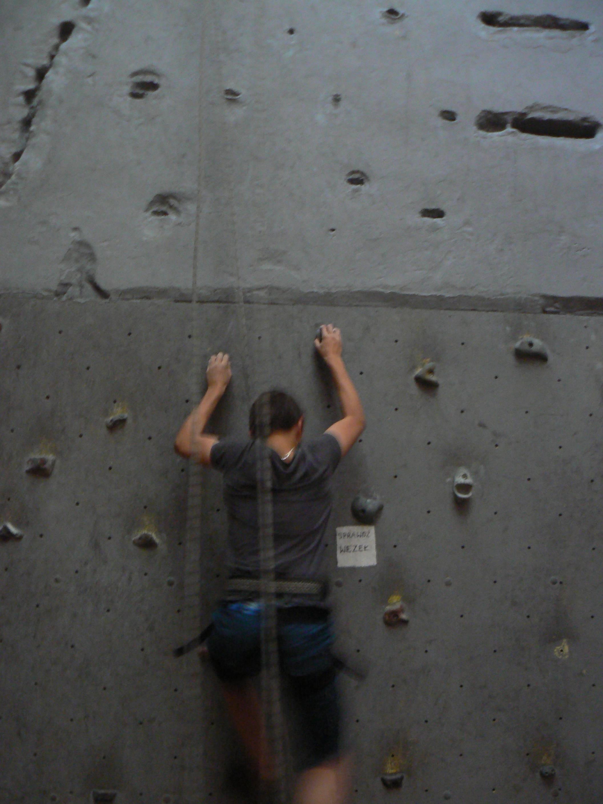 na miejsce dokonali przeglądu sprzętu, ubrali uprzęże, wpięli liny i ...a dalej przeszli szkolenie z zasad asekuracji, które jest niezbędnym elemntem wspinania. Jako pierwsi drogę do szczytu torowali Wojtek i Wiktor, dzielnie przecierając drogę o skali trudności na poziomie VI.5 + (skala Kurtyki). Na szczyt pierwszy dotarł Wojtek, tuż za nim Wiktor, który obrał równie trudną drogę, pokonując wschodnią rysę tuż przy północnym filarze fabryki. Humory dopisywały do końca wyprawy, w żargonie wspinaczkowym - zrobili jeszcze kilka dróg, ale "zbułkowane" mięśnie odmawiały już im posłuszeństwa. Po całej wyprawie zostały miłe wspomnienia, zakwasy w rękach i kilka pamiątkowych fotografii, choć pan Przemek liczy, że udało mu się zarazić wychowanków miłością do wspinaczki.