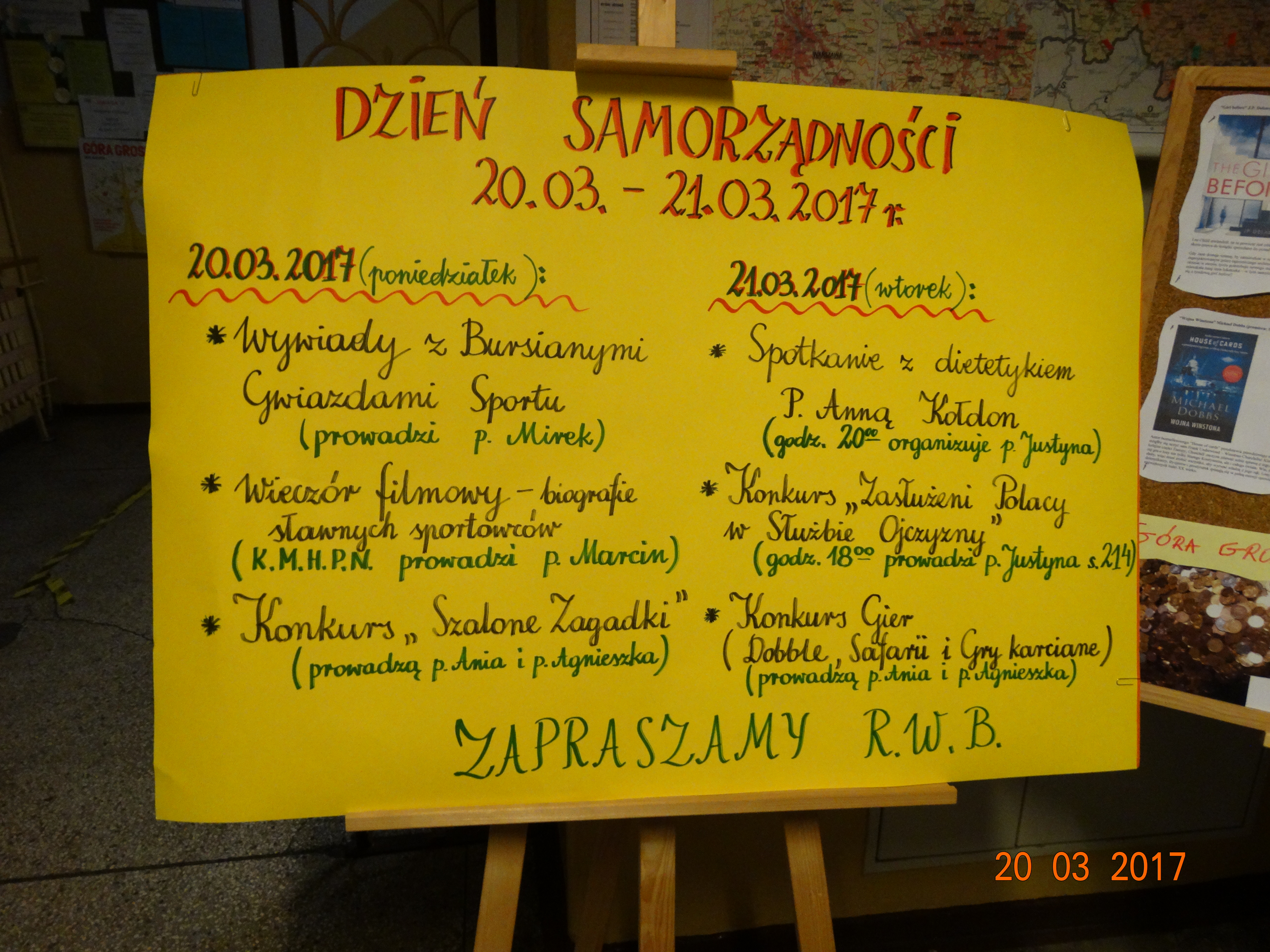 W dniach 20 i 21 marca 2017r. serdecznie zapraszamy wszystkich wychowanków Miejskiej Bursy Szkolnej w Zabrzu do udziału w obchodach Dnia Samorządności.