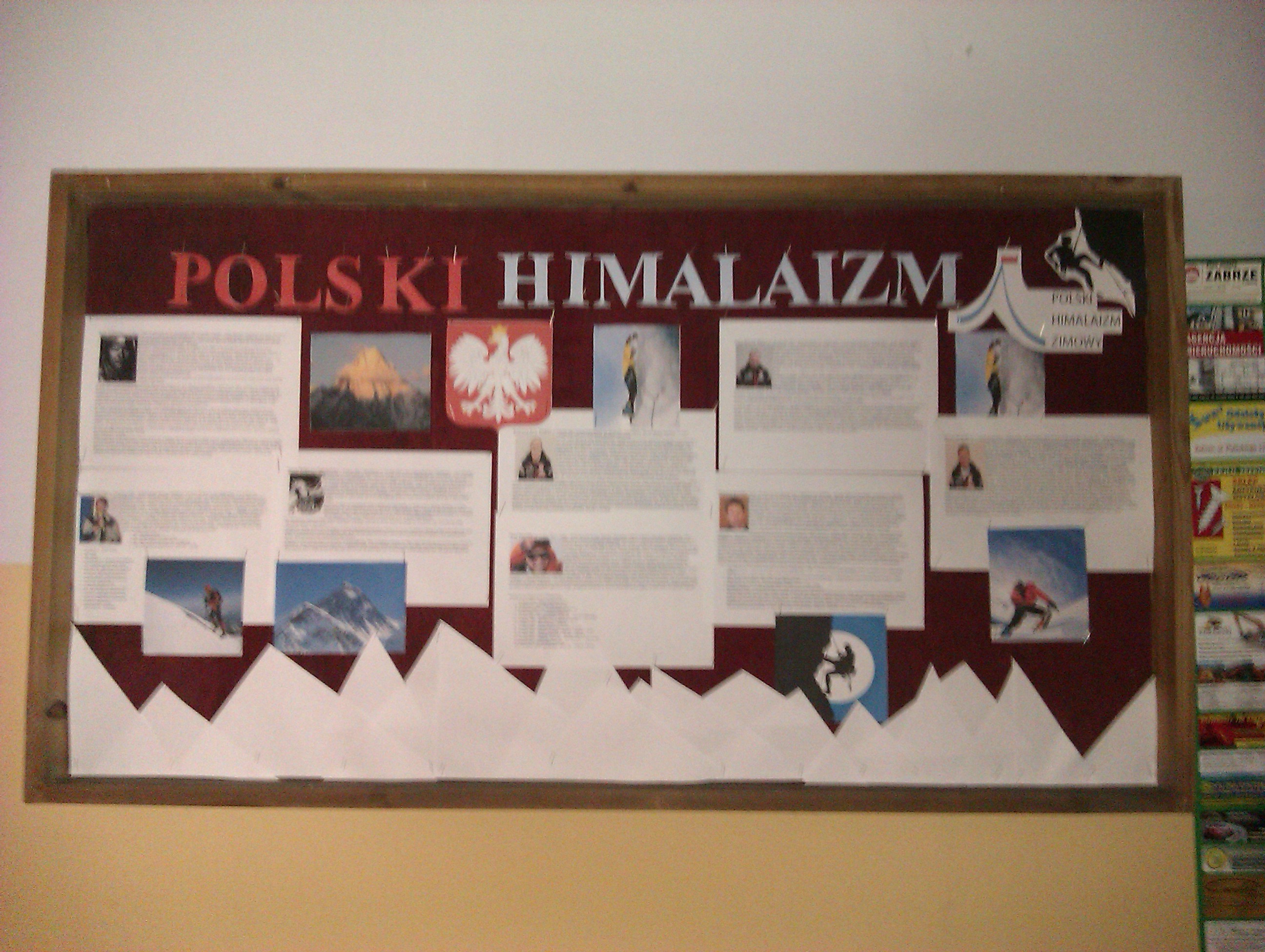 Konkurs Polski Himalaizm to próba zainteresowania mieszkańców Miejskiej Bursy Szkolnej, tym w czym polscy sportowcy są naprawdę najlepsi! Polski Himalaizm to, aż 11 szczytów ośmiotysięcznych zdobytych zimą, to hart ducha i niesamowita niezłomność ludzi pełnych pasji, nadziei i wiary we własne możliwości. Z takim właśnie przesłaniem rozpoczęliśmy w Miejskiej Bursie Szkolnej pierwszą edycję konkursu o naszych górskich podbojach. Zaczęło się skromnie od gazetki, która była swoistym kompendium wiedzy o najwyższych górach oraz ludziach, którzy je zdobywali. Kolejny etap polegał na prezentacji najistotniejszych informacji o ludziach, szczytach, rywalizacji i osiągnięciach. Krótki rys historyczny, kilka zdjęć, informacji, tylko tyle lub, aż tyle wystarczyło żeby dobrze się przygotować. Pytania konkursowe nie należały do najprostszych, czego dowodem może być kilka zdjęć prezentujących, jak nasi chłopcy „główkują” nad ich rozwiązaniem.