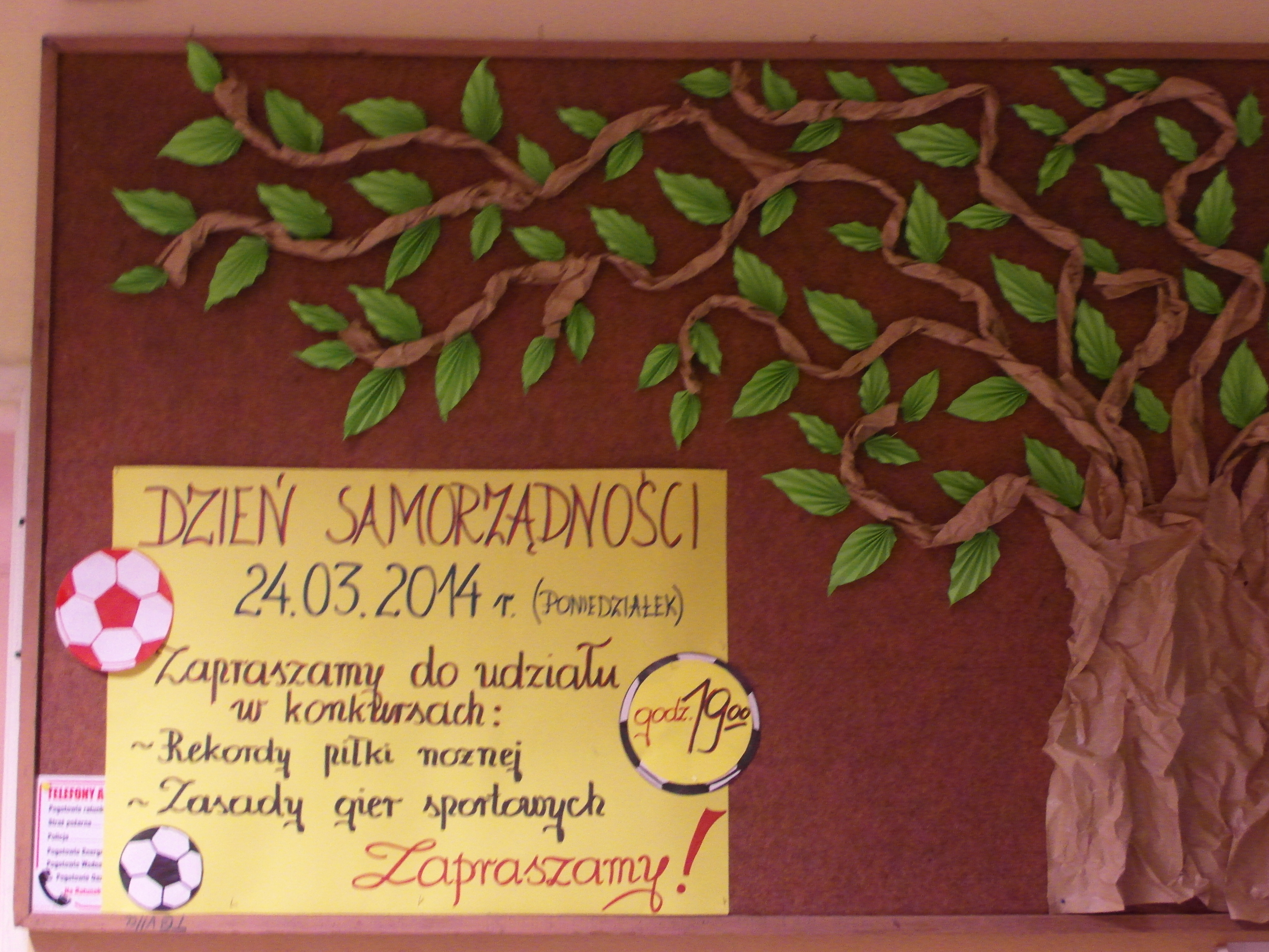 Już wiosna! Cieszymy się z tego faktu niezmiernie. 21 marca upłynął w Bursie pod hasłem „Dnia Samorządności”. W ramach tego dnia odbyły się konkursy: „Rekordy piłki nożnej” oraz „Zasady gier sportowych”. 1 kwietnia uroczyście wręczyliśmy dyplomy i nagrody zwycięzcom.