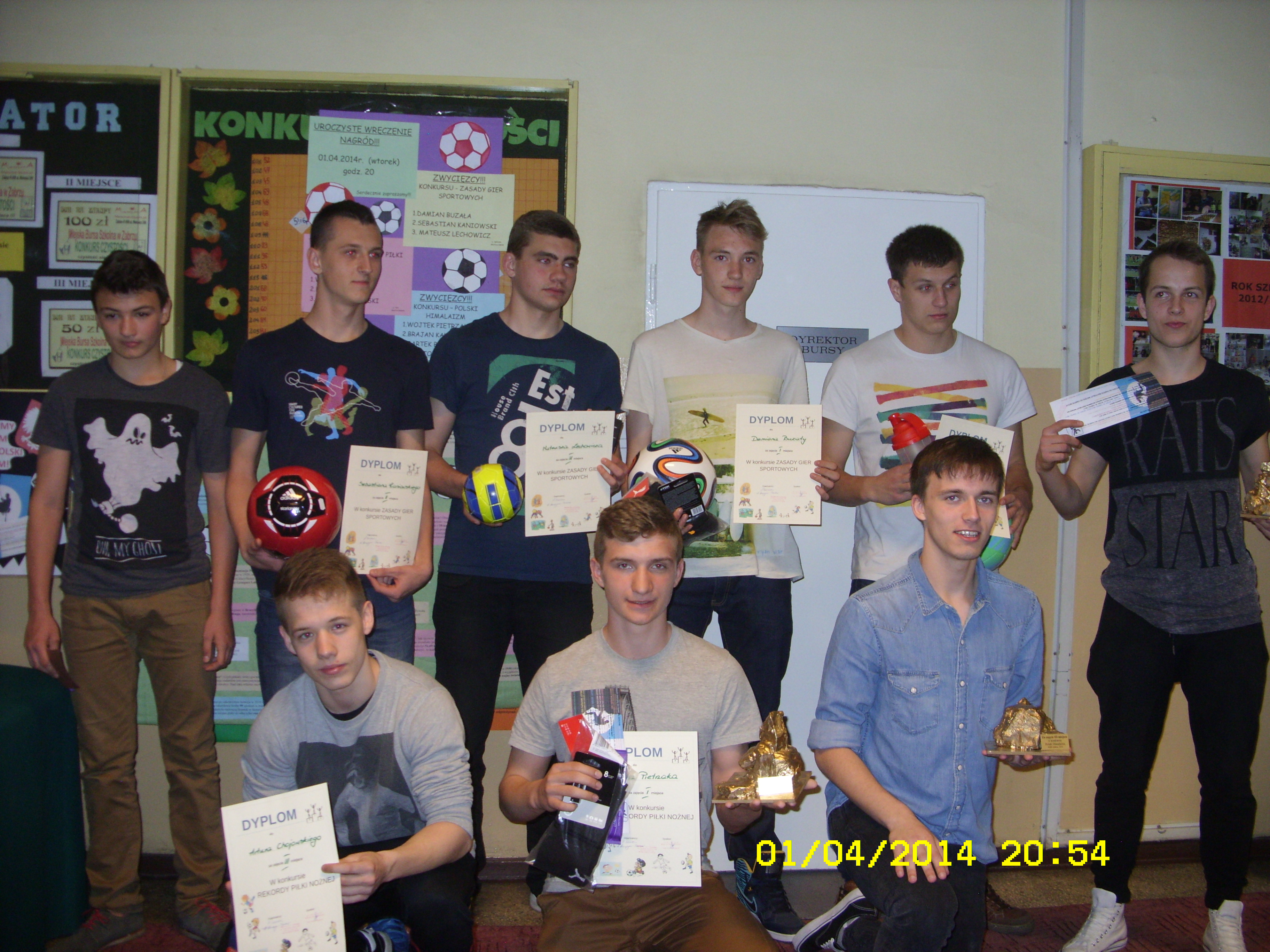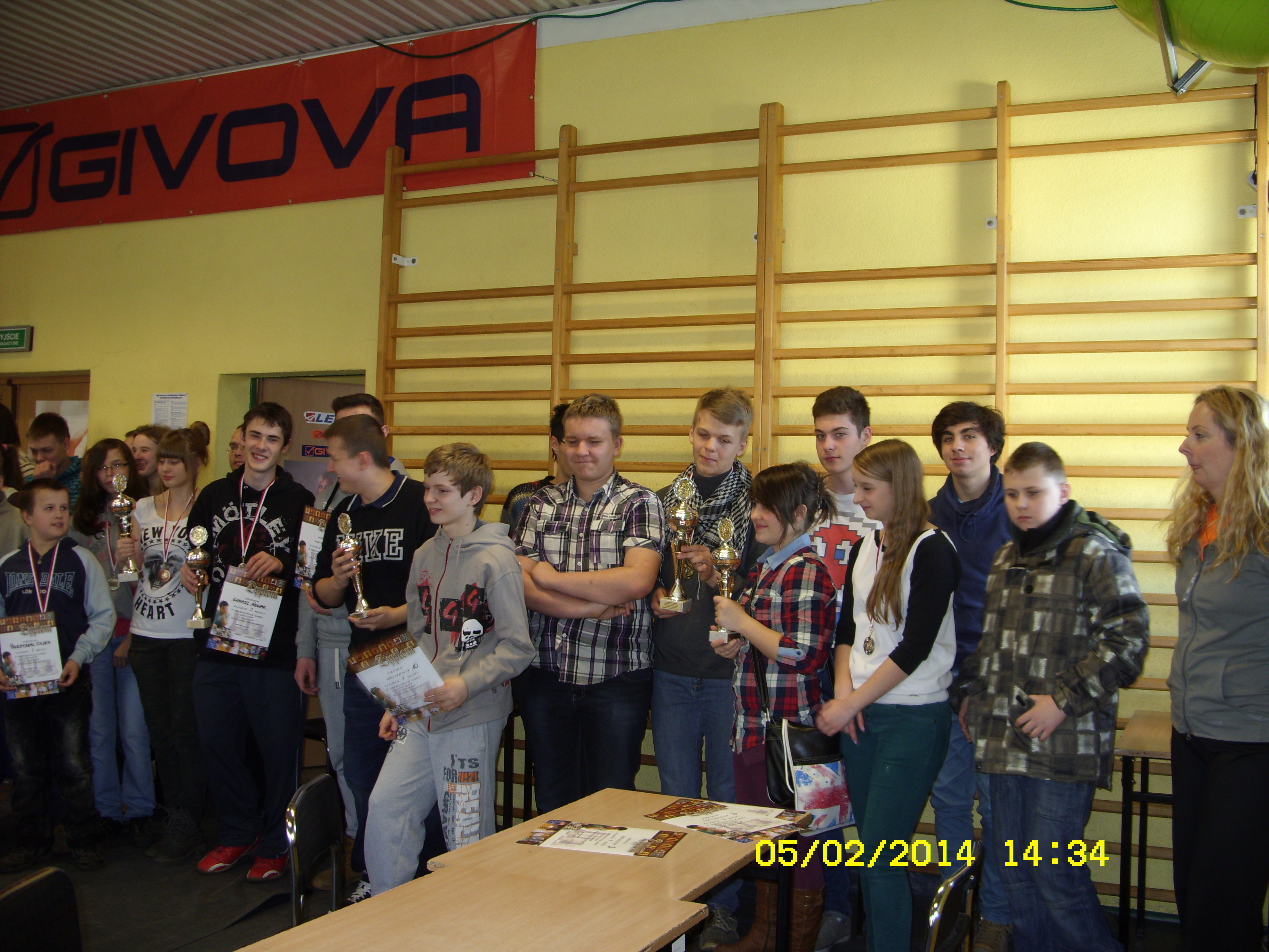 Jednak przyszli laureaci prezentowali dobry humor po otrzymaniu pytań konkursowych. Przypomnijmy, że było o co walczyć! Każdy z laureatów konkursu otrzymywał „Bilet wstępu do Fabryki Mocy”, który upoważnia wychowanków do wejścia na prawdziwą ściankę wspinaczkową pod okiem mgr Przemysława Sadowniczyka i doświadczonego instruktora wspinaczki z Polskiego Związku Alpinistycznego. Inauguracja konkursu i rozdanie nagród miało miejsce 1.04.2014r w Miejskiej Bursie Szkolnej, radości nie było końca! Laureaci konkursu to: