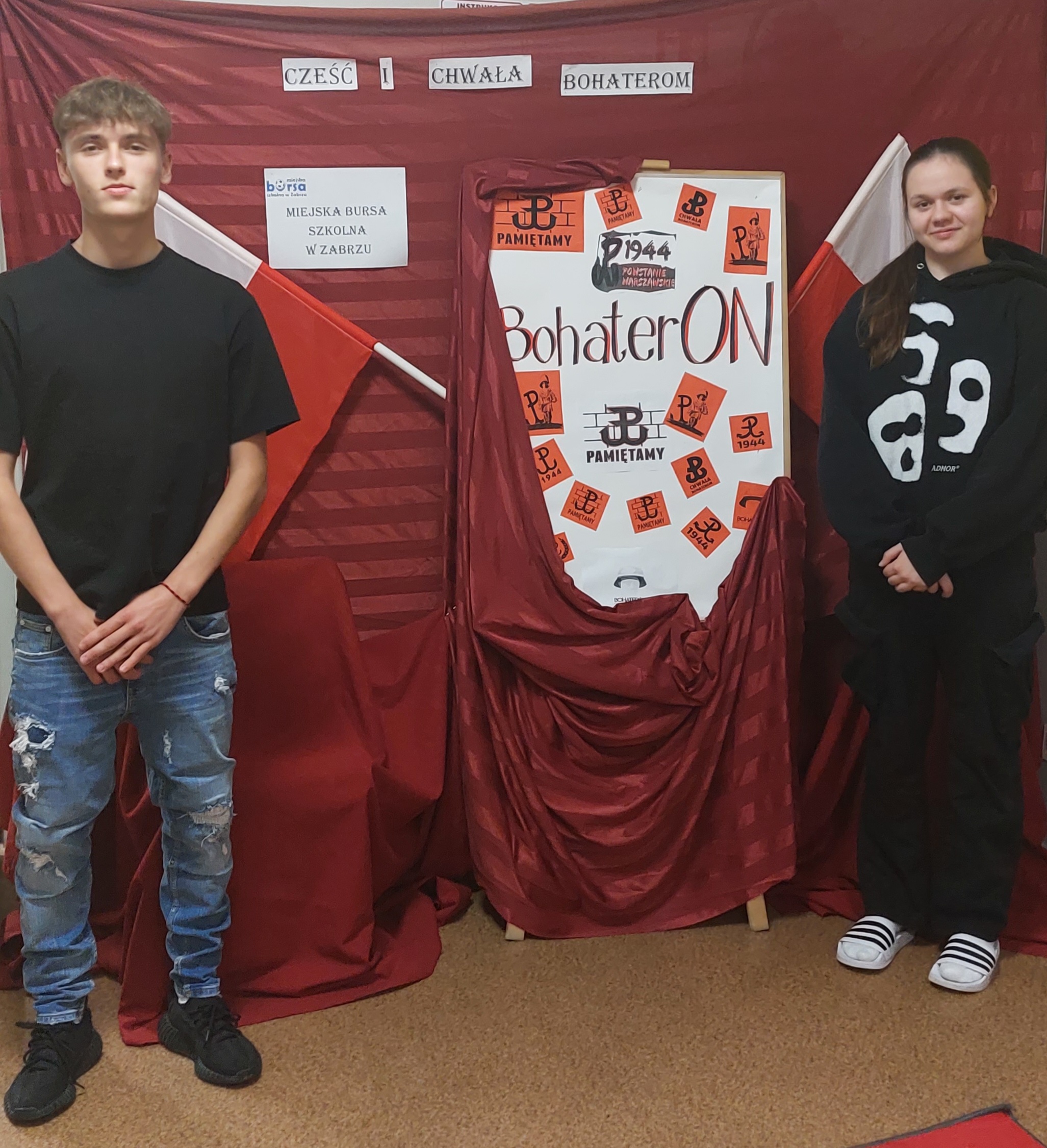 W tym roku Miejska Bursa Szkolna w Zabrzu przystąpiła do akcji BohaterOn. Celem tego przedsiewzięcia było zapoznanie wychowanków z tematyką II wojny światowej oraz przedstawienie bohaterskich czynów żołnierzy, harcerzy i mieszkańców Warszawy bioracych udział w Powstaniu Warszawskim. Zajęcia, prelekcje oraz słuchowiska pozwoliły naszym wychowankom na bliższe poznanie realiów życia Warszawiaków w trudnym czasie Powstania oraz wychowankowie mogli usłyszeć o bohaterskich i heroicznych czynach samych powstańcow.