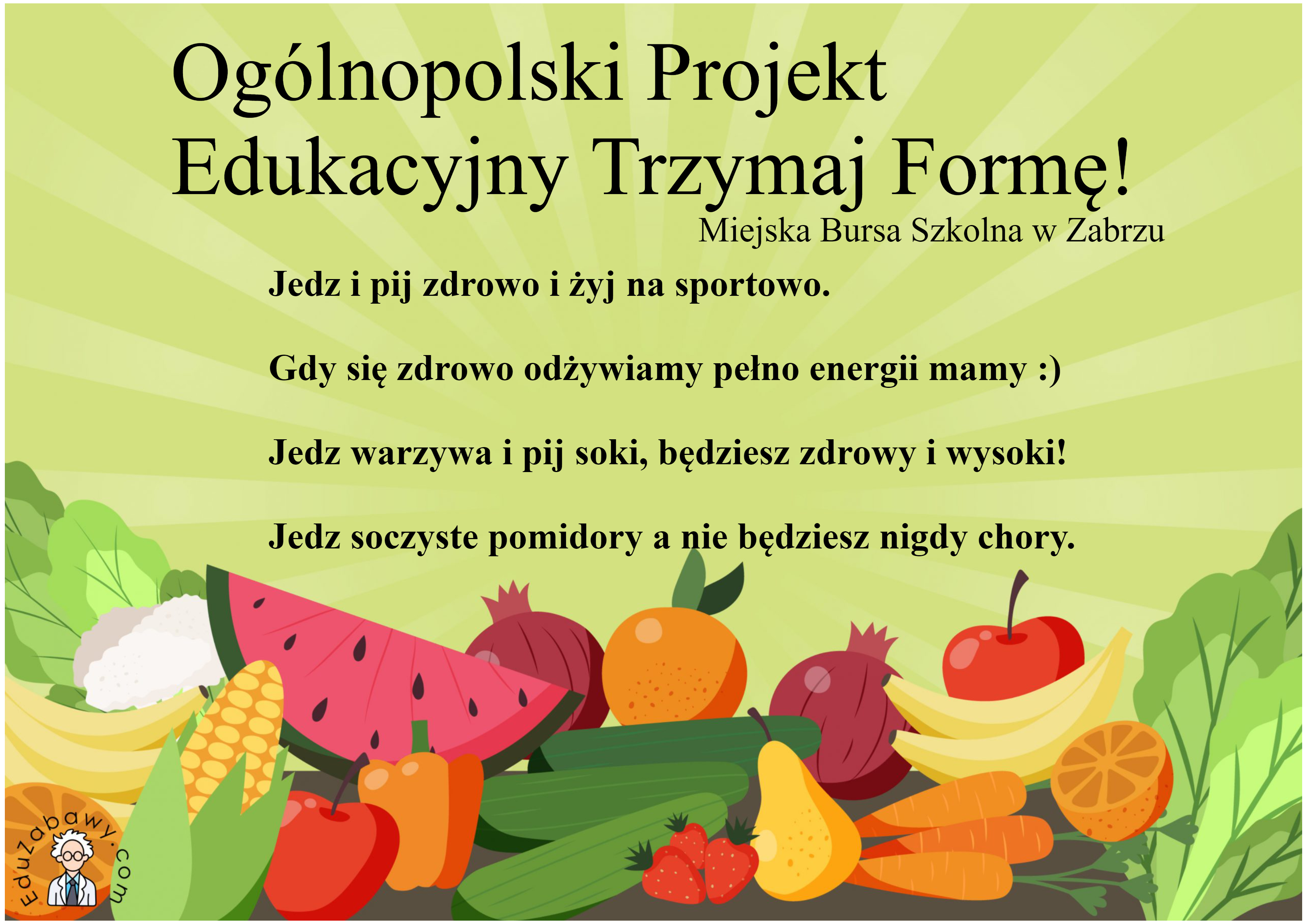 Miejska Bursa Szkolna w Zabrzu w roku szkolnym 2022/2023 przyłączyła się do Ogólnopolskiego Programu Edukacyjnego "Trzymaj Formę". W ramach realizacji zadań wychowankowie przygotowali plakaty promujące zdrowy tryb życia. Każdy mieszkaniec Bursy wie, że aktywność fizyczna i zbilansowana dieta to podstawa do utrzymania zdrowia i prawidłowej sylwetki :)