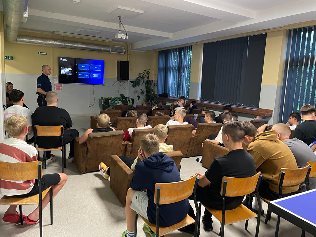 W dniu 25.09.2023 odbyła się prelekcja przeprowadzona przez funkcjonariusza mł. asp. Adama Strzodkę na temat odpowiedzialności prawnej za popełnione czyny.