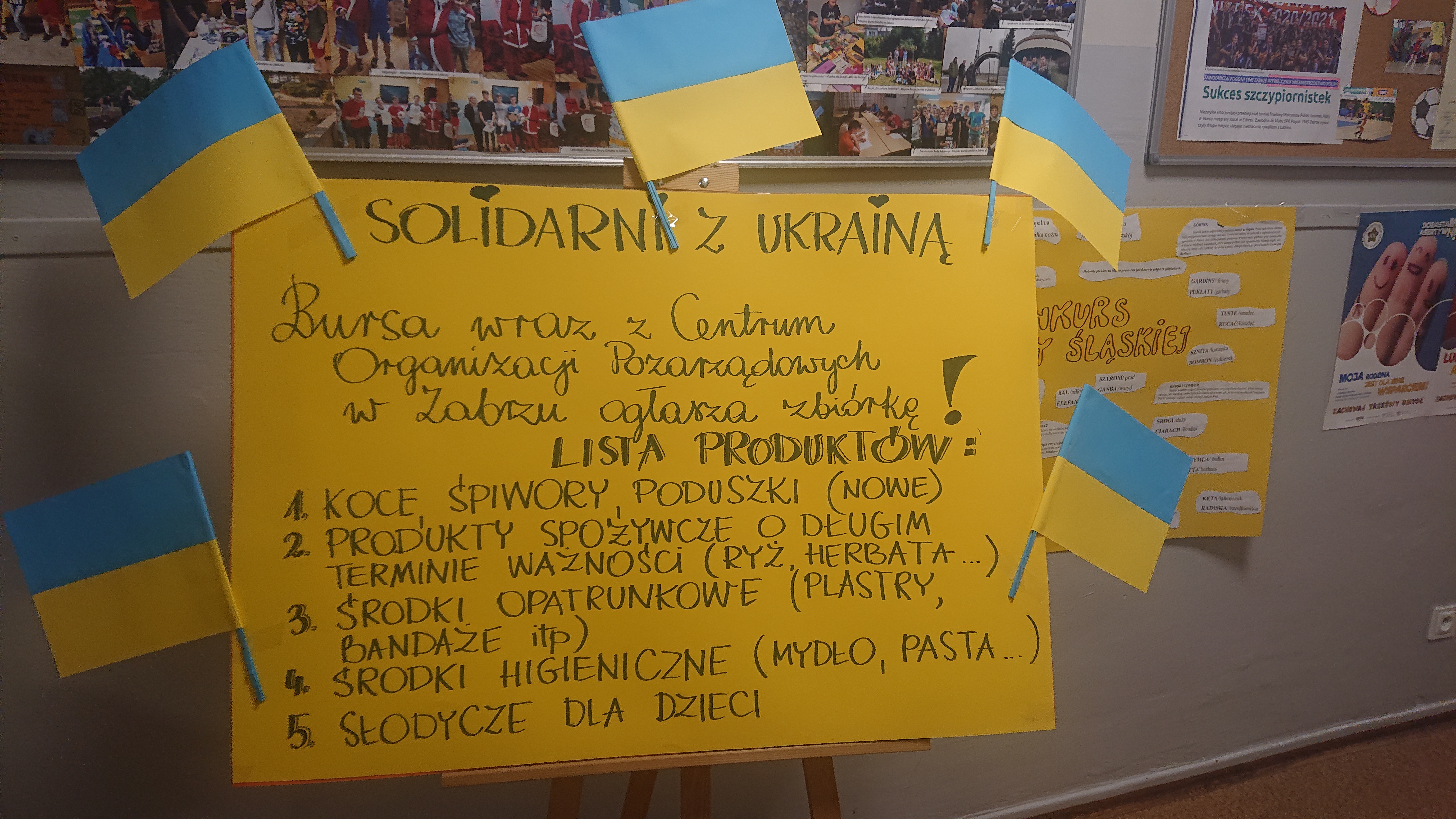 Nasza placówka całym sercem wspiera mieszkańców Ukrainy, głęboko wierząc, że na ich twarzach i w sercach zagości znów spokój i uśmiech. Solidryzując się z walczącą Ukrainą wraz z Centrum Organizacji Pozarządowych w Zabrzu ogłaszamy zbiórkę - pomózcie nam pomagać!